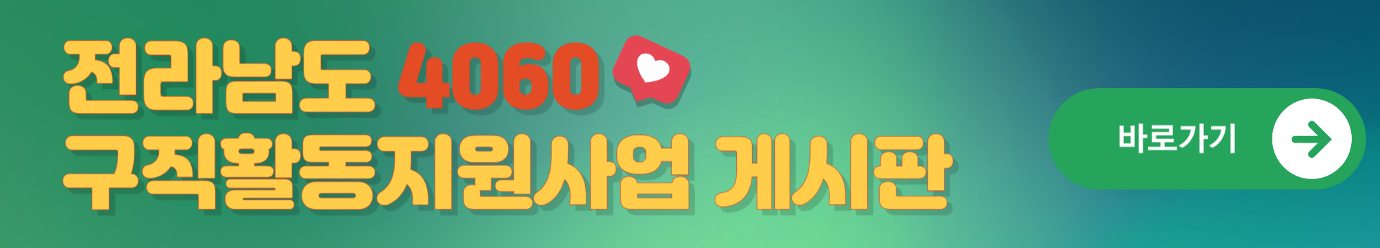 전라남도에서 진행하는 4060 구직활동지원사업을 통해 많은 중장년 구직자들이 취업에 더욱 가까워지길 바랍니다. 조기 마감이 될 수 있으니 기한 내에 신청해 주시기 바랍니다. 문의 전화는 061-750-7700으로 연락해 주시기 바랍니다.