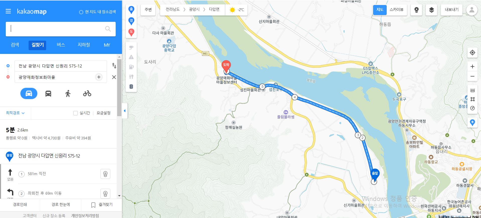 - 주차장 주소 : 전남 광양시 다압면 신원리 575-12 (둔치 주차장)